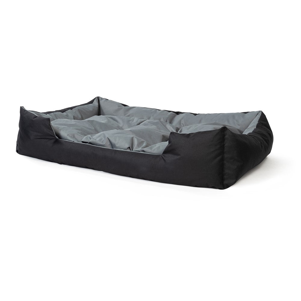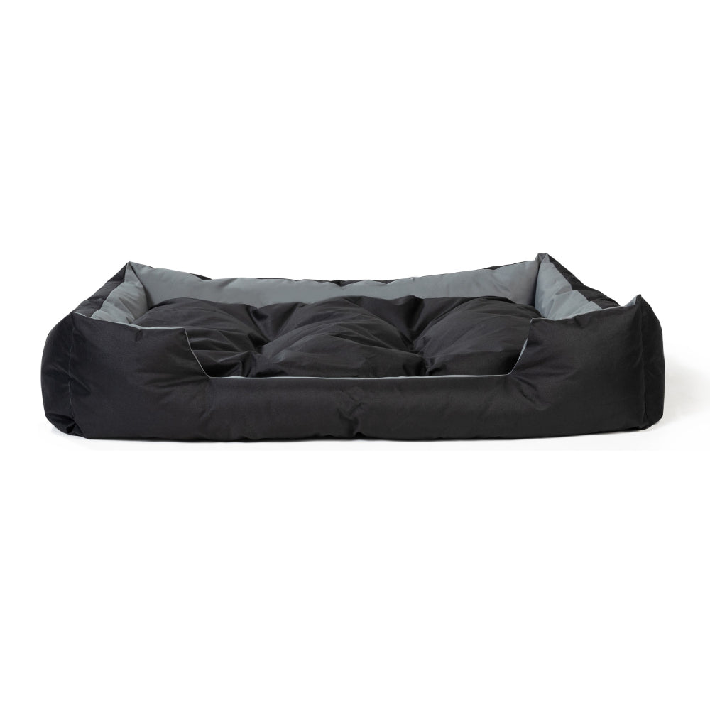 - Très pratique, ce lit pour chien en tissu oxford est réversible, une face grise et une face noire.