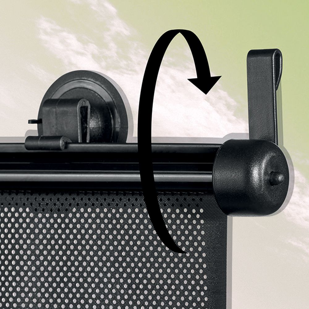 Son système de fixation par ventouses ou par crochets permet de le fixer rapidement sur les vitres arrières de la voiture.