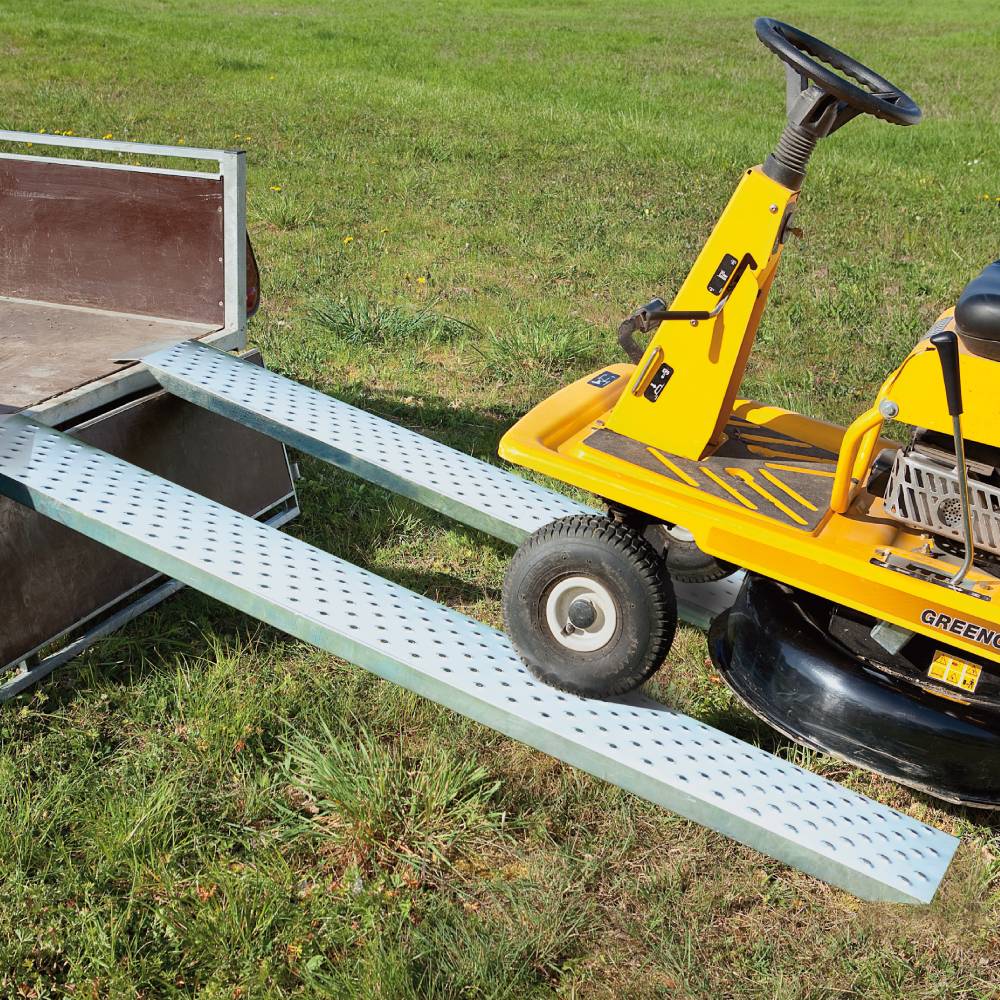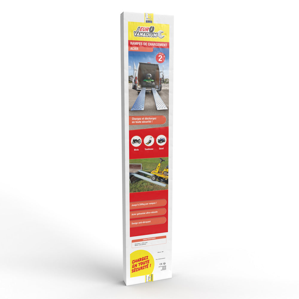 - Chargez facilement vos véhicules grâce à ce lot de 2 rampes acier antidérapantes. Moto, quad, tondeuse autoportée…