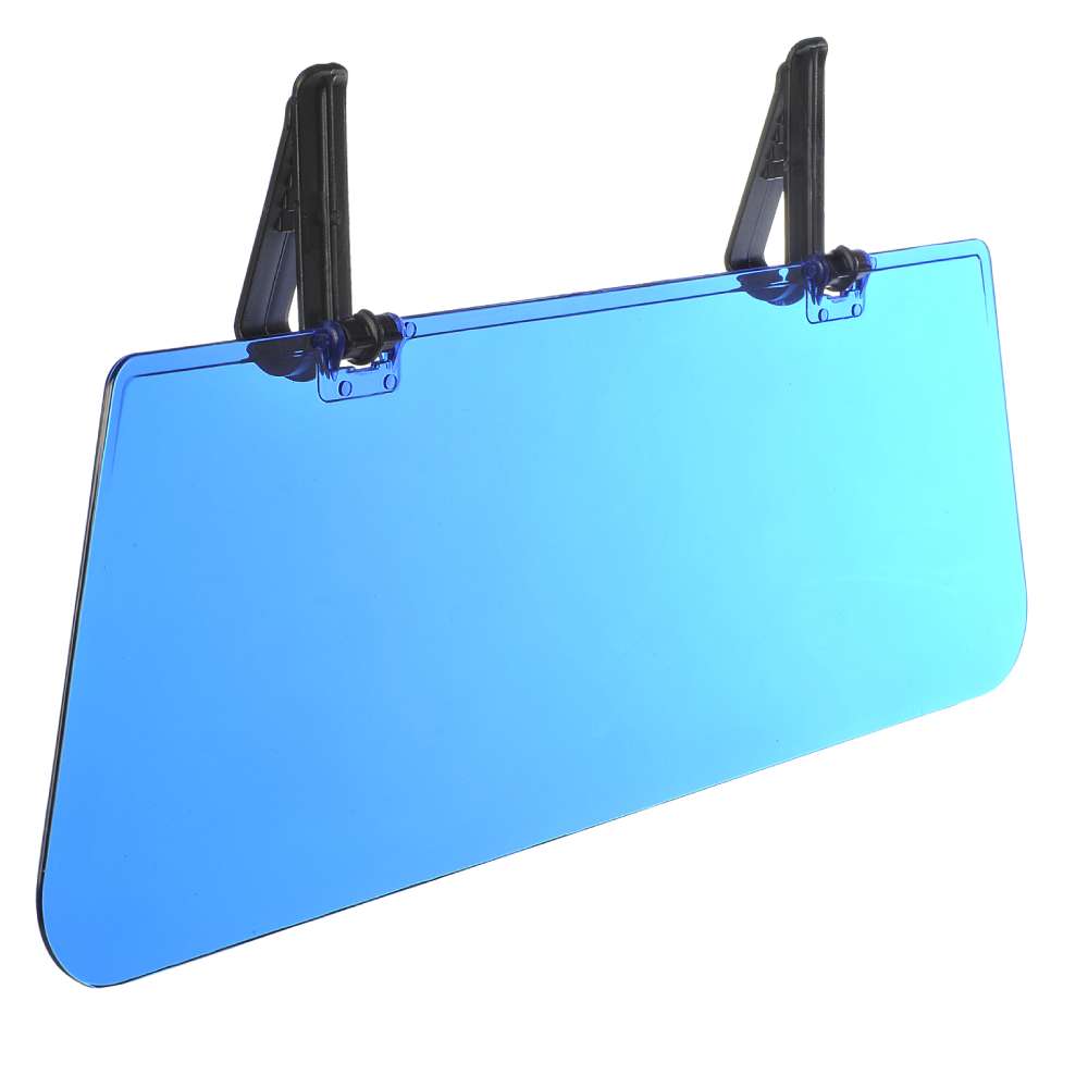 - Dimensions de la visière solaire : 12 x 33 cm. Extension anti-éblouissement en PVC, teinté de bleu.