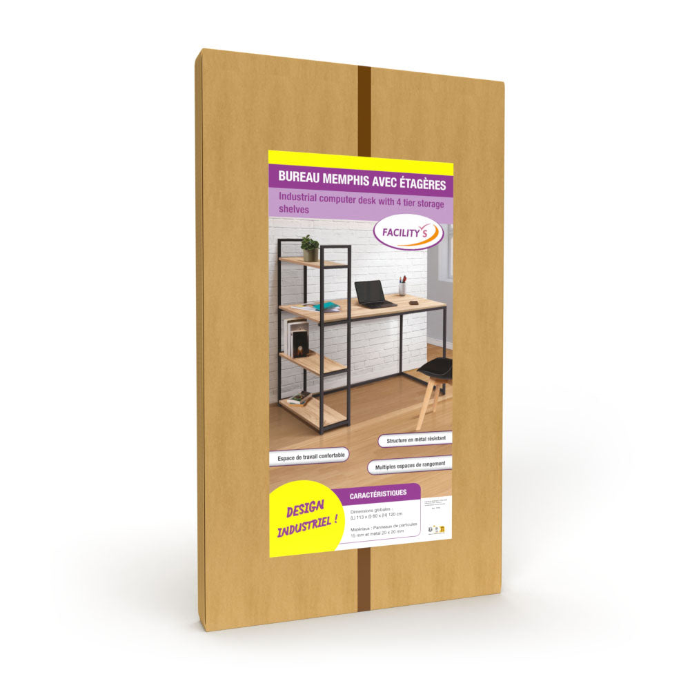- Pour travailler à domicile, ce bureau industriel effet bois et métal avec étagère 4 niveaux intégrée est idéal.