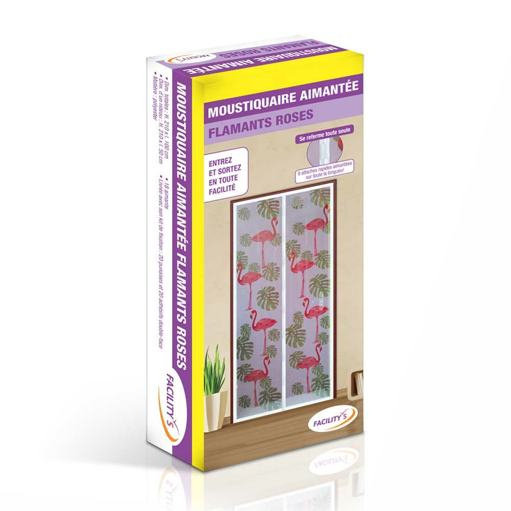 MOUSTIQUAIRE AIMANTÉE IMPRIMÉE FLAMANT ROSE
