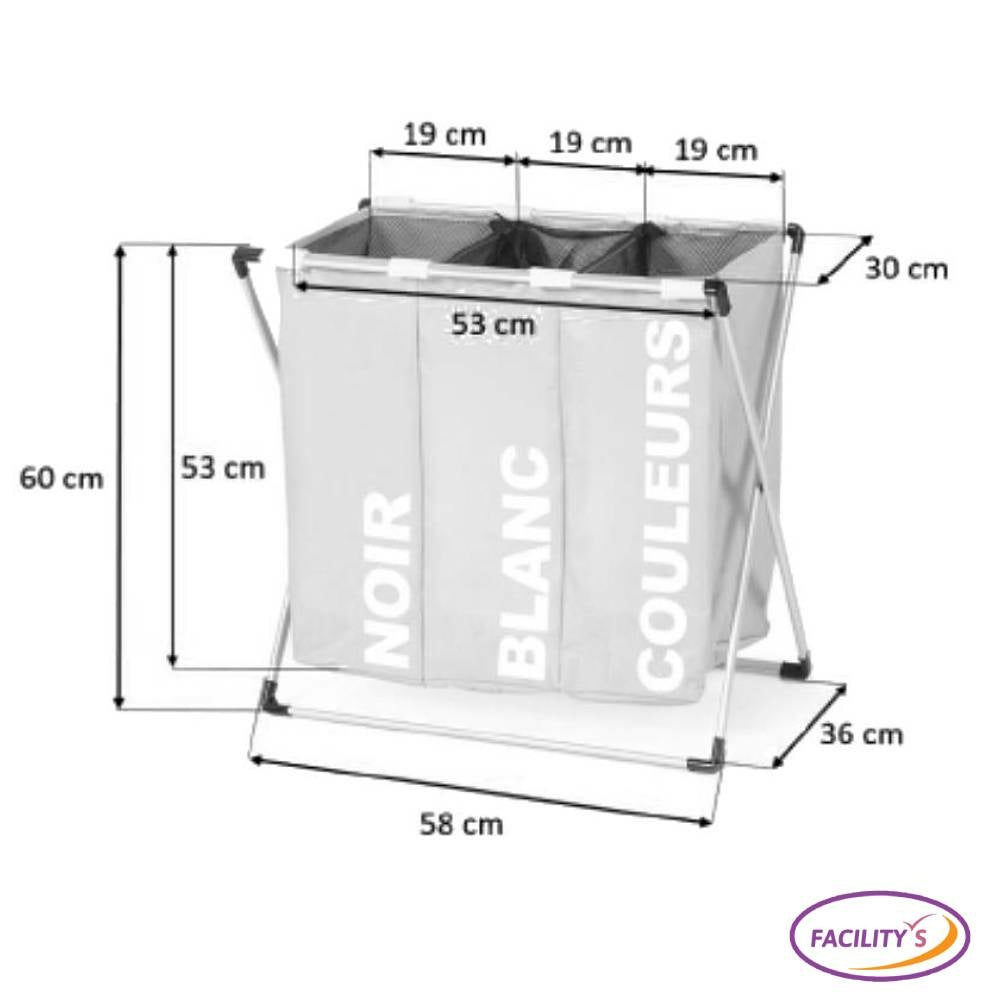 Grâce à notre panier à linge trois compartiments, gagnez du  temps et oubliez le tri du linge avant chaque lessive ! Sa structure en aluminium en fait un produit robuste mais également très souple grâce à ses connecteurs en plastique  qui lui permettent de se replier sur lui-même afin de gagner  un maximum d'espace.
