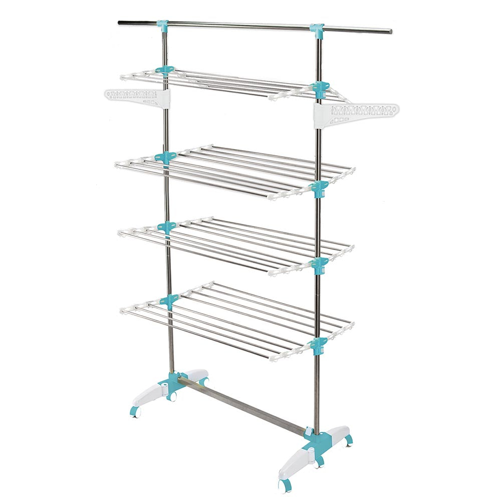 Les porte-cintres, crochets lingerie et la barre télescopique viennent accroire la capacité d’étendage de ce séchoir.