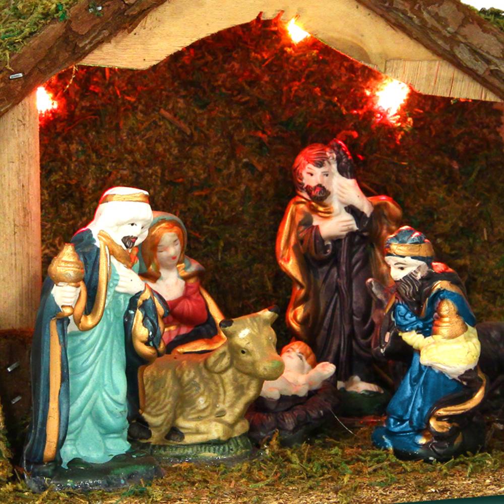 - Illuminez vos soirées de fêtes avec cette jolie crèche en bois traditionnelle.