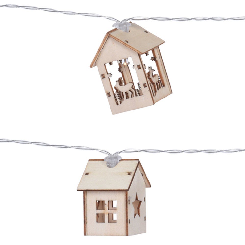 - Pour une décoration lumineuse d'intérieure chaleureuse, optez pour cette jolie guirlande composée de 10 maisonnettes bois avec LED.