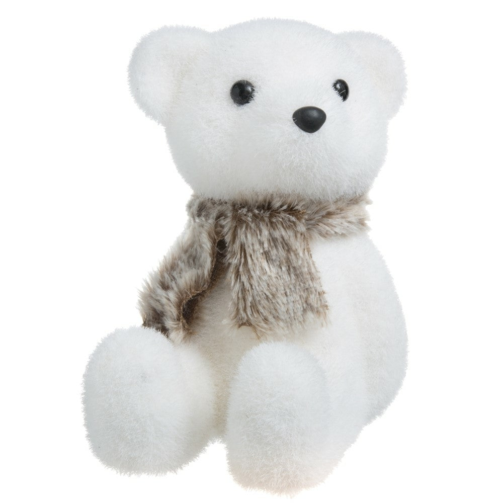 • Bébé ours polaire de Noël de couleur blanc avec écharpe marron.