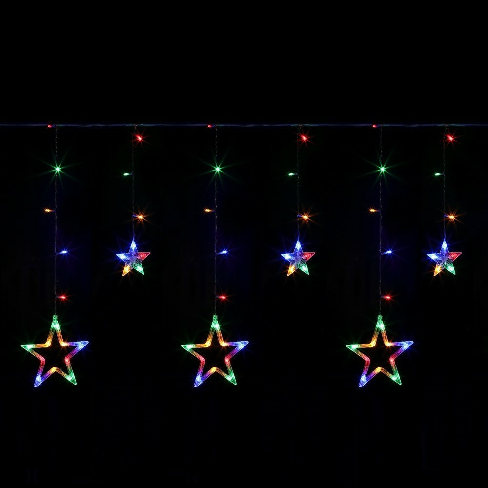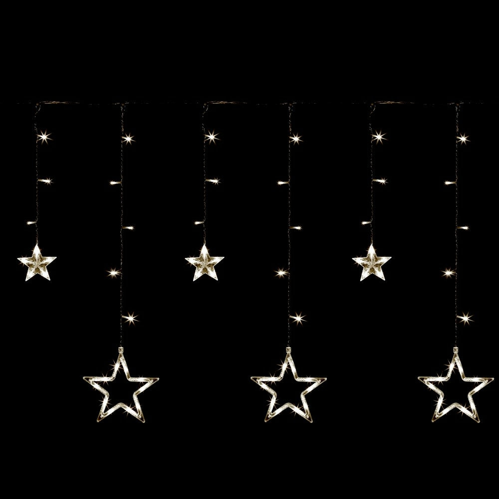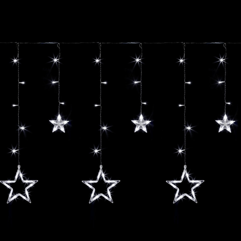 - Dimensions du rideau lumineux : longueur 3,3 m d'étoiles avec 138 LED + 3 m de câble. Fonctionnement à piles.