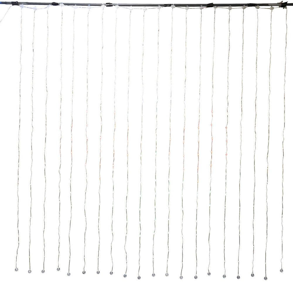 Rideau lumineux multicolore 2×2 m équipé de 400 LED RGB digitales réparties sur 20 guirlandes verticales. Ce rideau dispose d'une connectivité via application mobile pour contrôler pas moins de 400 effets lumineux. Possibilité de programmer ses propres effets.