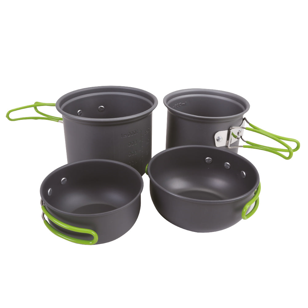 - Composé de 4 pièces dont 2 casseroles et 2 bols, ce kit de camping vous sera d'une grande utilité pour la cuisson de vos aliments lors de vos sorties trekking.