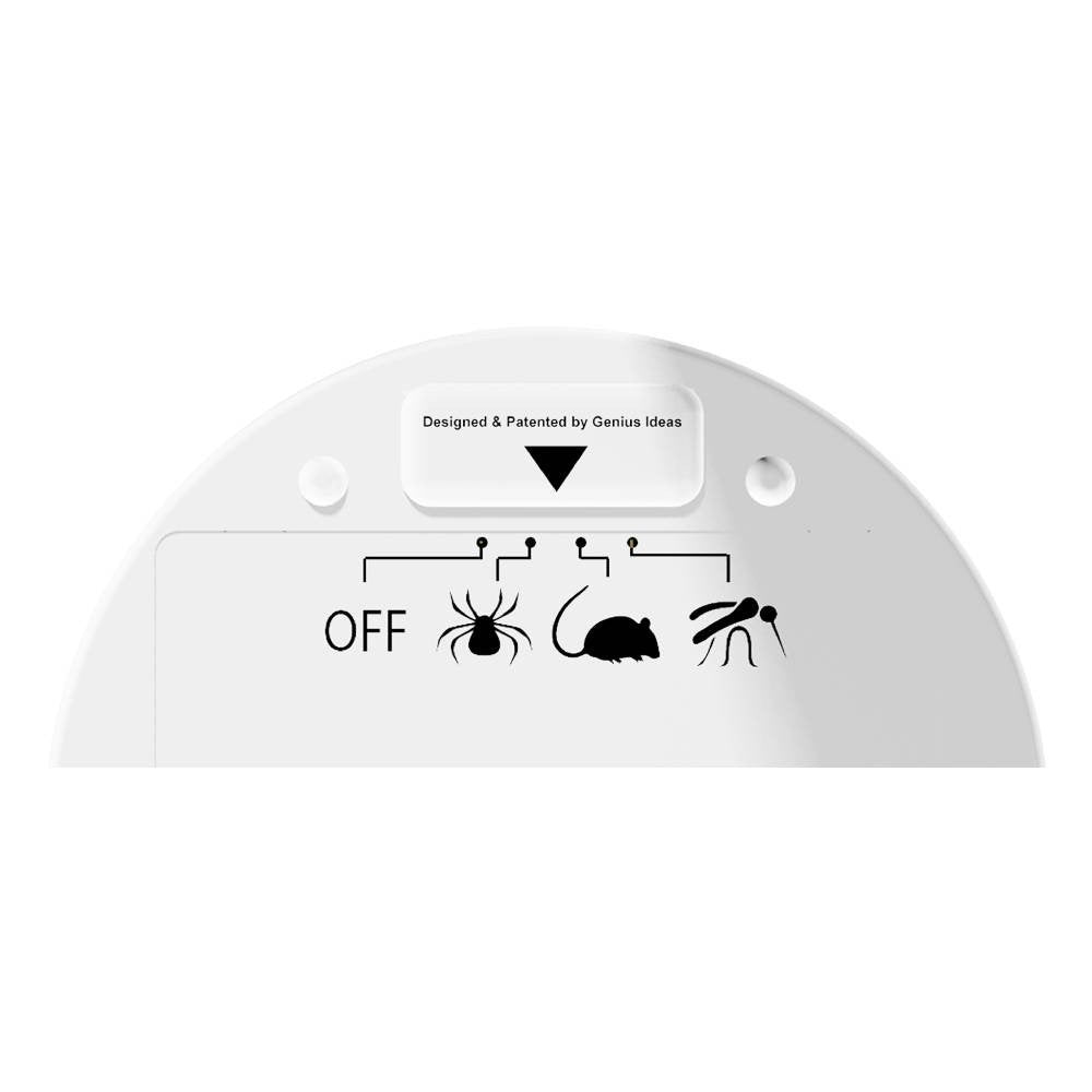 Emet des fréquences à ultrasons qui permettent de chasser les nuisibles (rongeurs, araignées, cafards et moustiques).