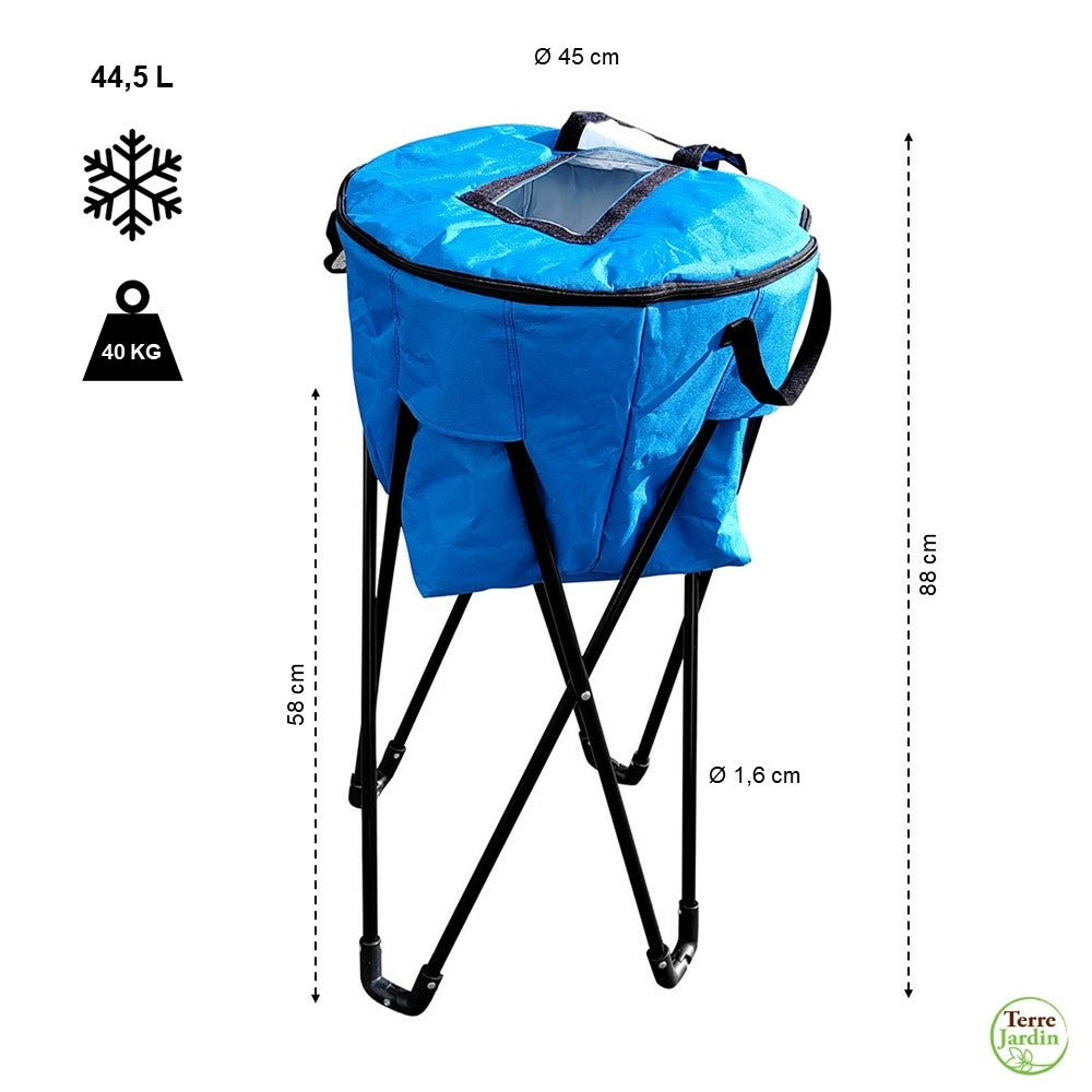 • Dimensions totale une fois la glacière dépliée : longueur 45 cm x largeur 45 cm x hauteur 86 cm pour une glacière grand volume !