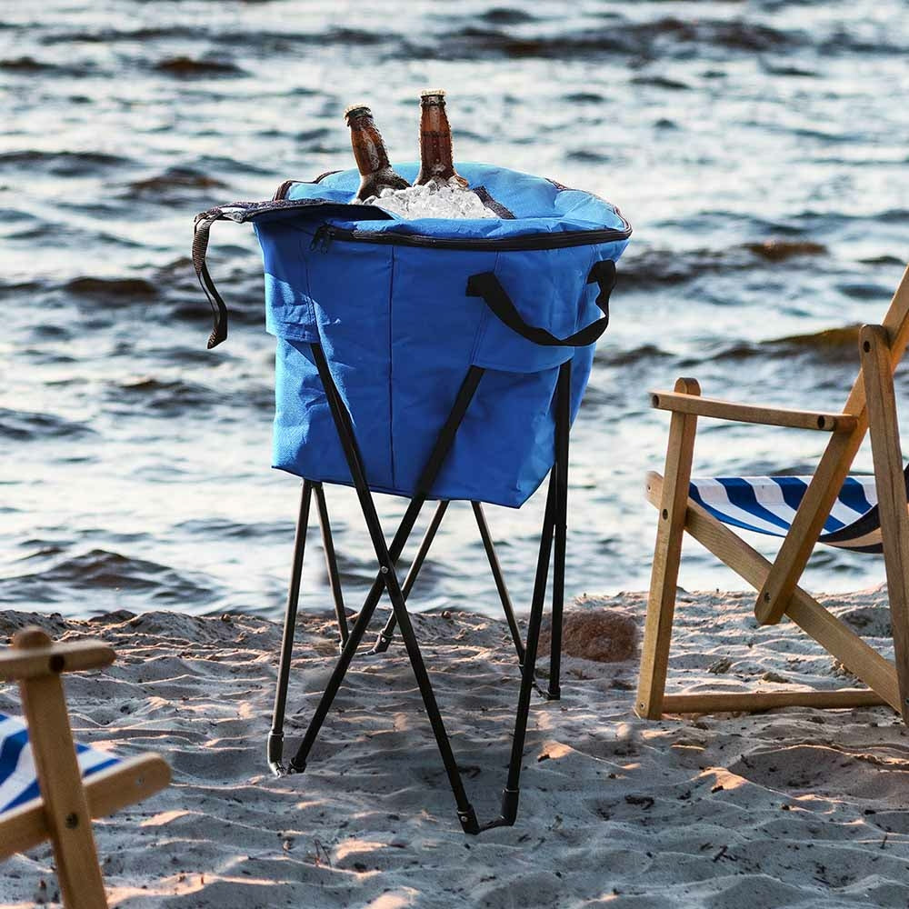 - Gardez votre pique-nique à portée de main ! Avec son sac isotherme en hauteur, cette glacière sur pied vous évite de vous baisser pour attraper vos mets par la grande ouverture zippée ou la plus petite en velcro.