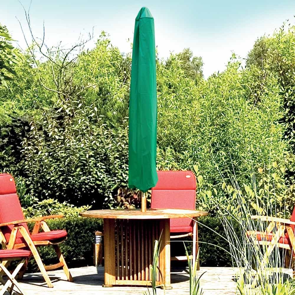Protégez discrètement et efficacement votre parasol avec cette housse verte en PVC très résistant.