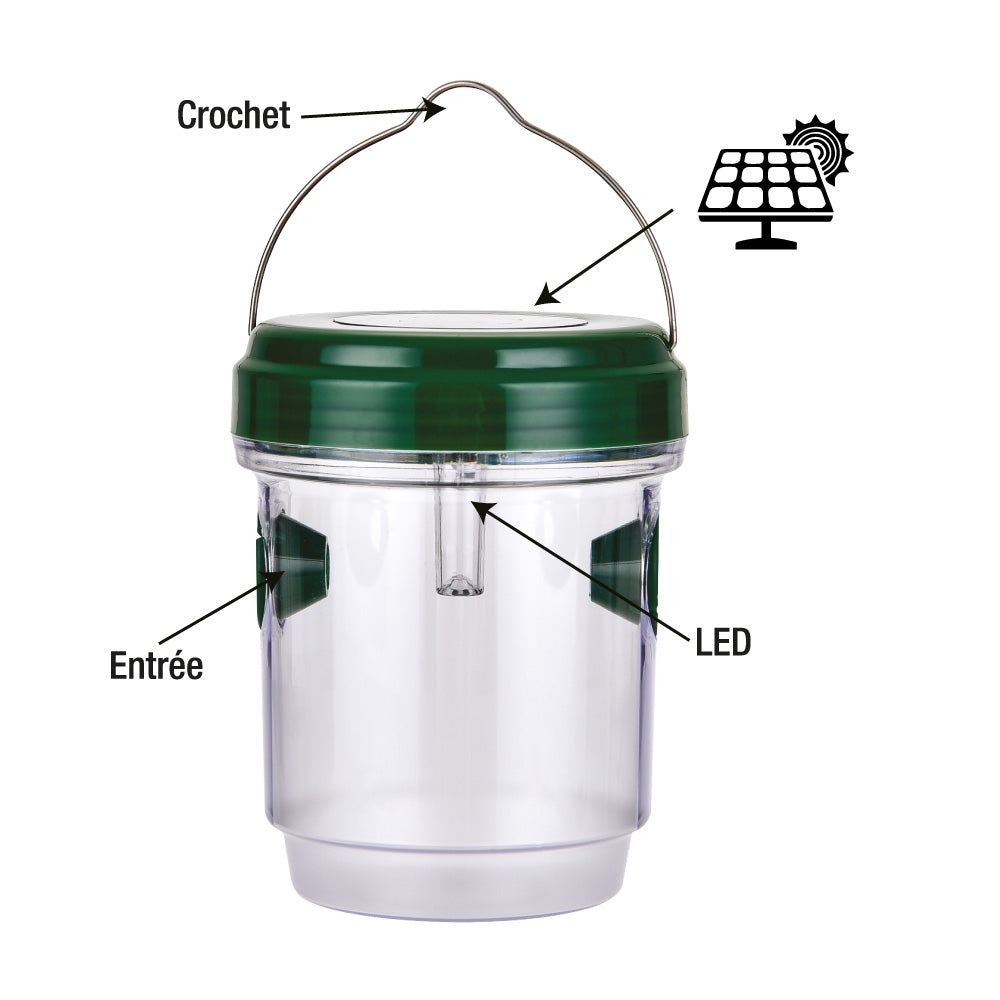 - Ne vous laissez plus importuner par les mouches et guêpes en extérieur : installez cet astucieux piège à insectes solaire ! Ce piège est efficace de jour comme de nuit.
