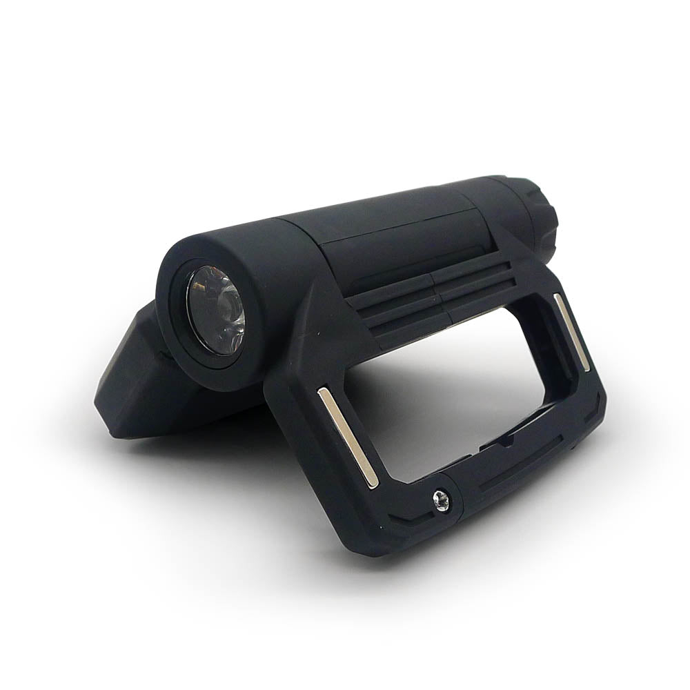 - La coque arrière du projecteur multifonction est équipée d'un aimant et d'un mousqueton ce qui vous permettra de le positionner facilement à l'endroit souhaité.