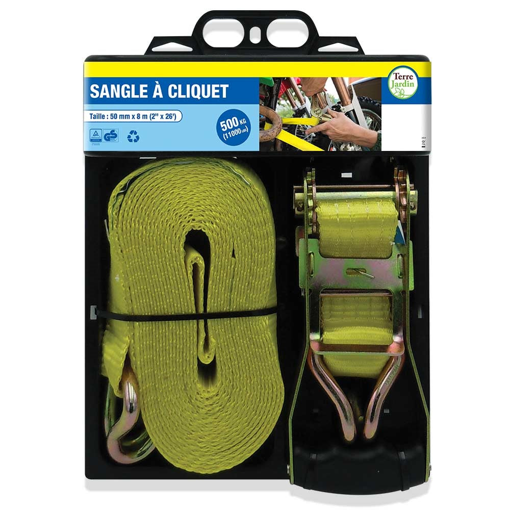 - Dimensions de la sangle : 50 mm de large x 8 mètres de long.