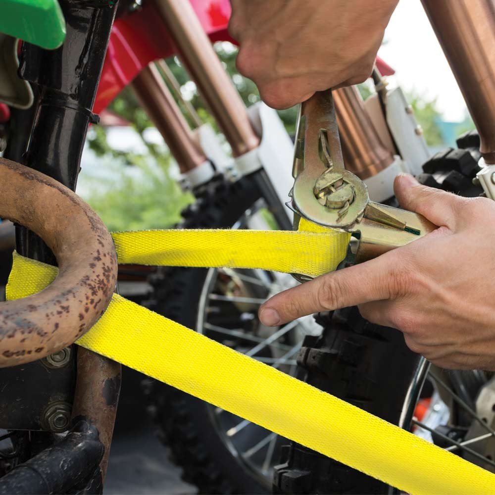 - Sangles d'arrimage à cliquet en polyester avec verrouillage automatique.