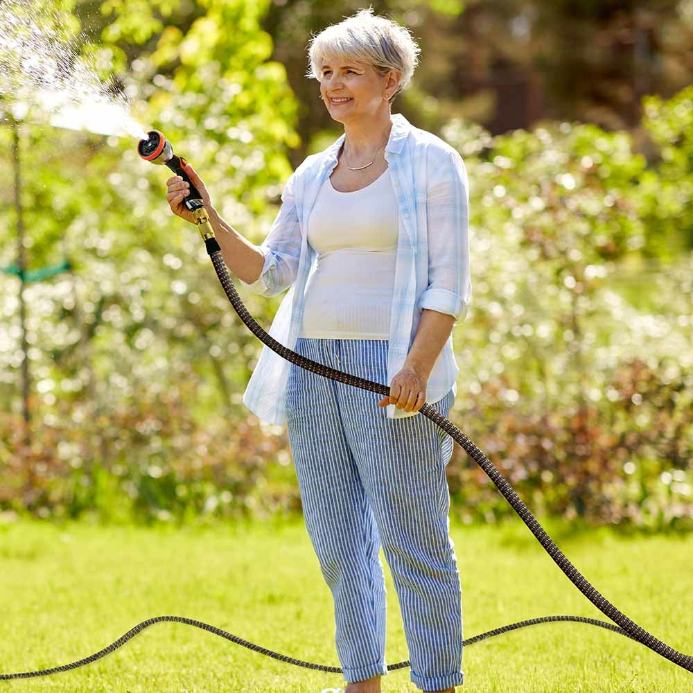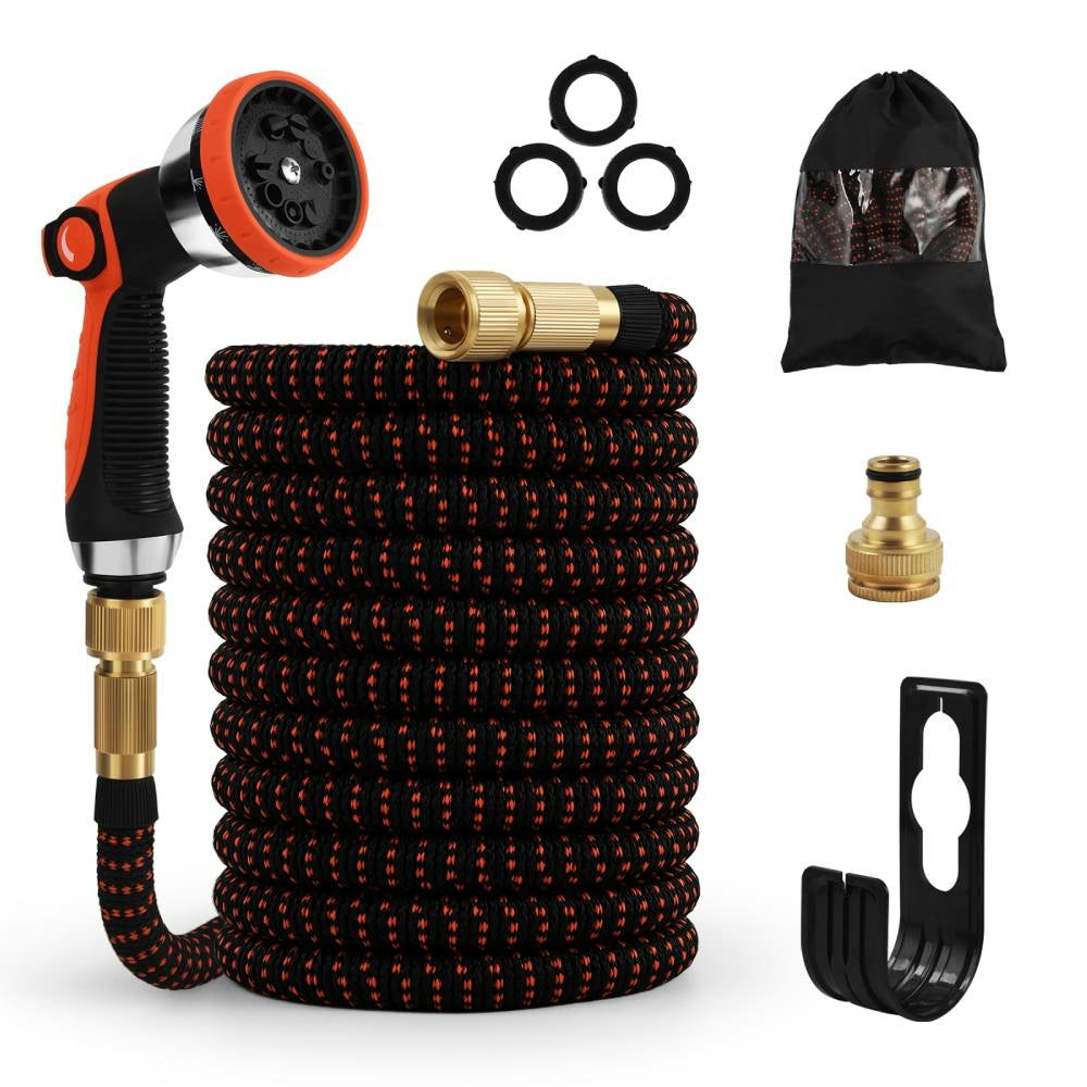 - Ce tuyau d'arrosage est extensible jusqu'à 3 fois sa longueur lorsqu'il est utilisé ! À une extrémité, un raccord en aluminium permet de brancher le tuyau au robinet. À l'autre, un pistolet d'arrosage offrant 10 jets différents !